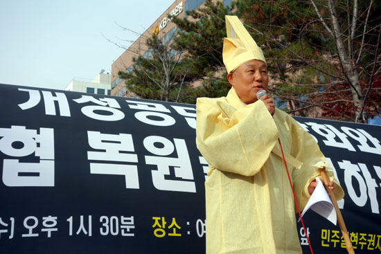 허인회 주권자회의 공동대표의 사회로 진행된 장례식에 이어 ‘개성공단 및 남북경협 부활 염원제’와 ‘개성공단 및 남북경협 피해보상.특별법 제정 촉구대회’가 이어졌다.