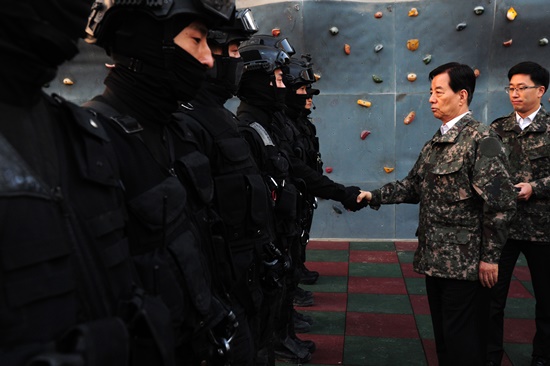 국방부는 이날 보도자료를 통해 "한민구 국방부 장관은 오늘 연초부터 계속되고 있는 군사적 긴장 속에서도 국가방위의 소임을 다하고 있는 특수전사령부를 방문하여 군사대비태세를 점검하고 장병들을 격려하였다"고 밝혔다.