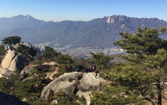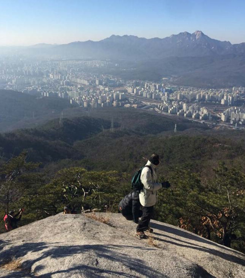 ▲ 수락산 오르는 중 멀리 도봉산이 보인다. [사진제공-리정애]