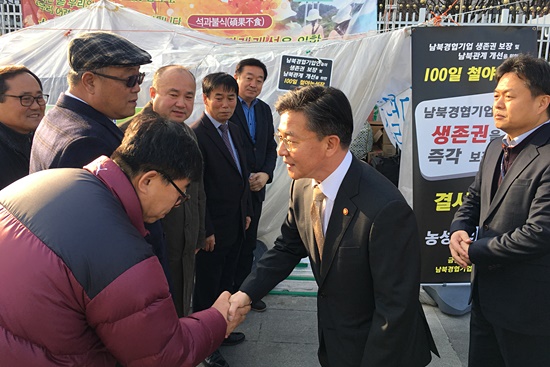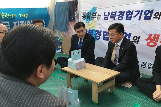홍용표 통일부 장관이 6일 남북경협기업 생존권 보장을 요구하는 100일 철야농성장을 95일만에 처음으로 방문했다. 여기서 남북경협 기업인들은 생존권 대책을 요구했고, 홍용표 장관은 의견을 청취했다.