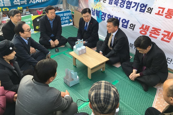 남북경협 기업인들은 지난해 10월 4일 '남북경협 기업 생존권 보장 및 남북관계 개선을 위한 평화 큰행진'을 갖고 100일 철야농성에 돌입했다. 이들은 △남북경협기업 생존대책 즉각 마련, △개성공단과 동일한 지원대책 마련 등을 촉구하고 있다.
