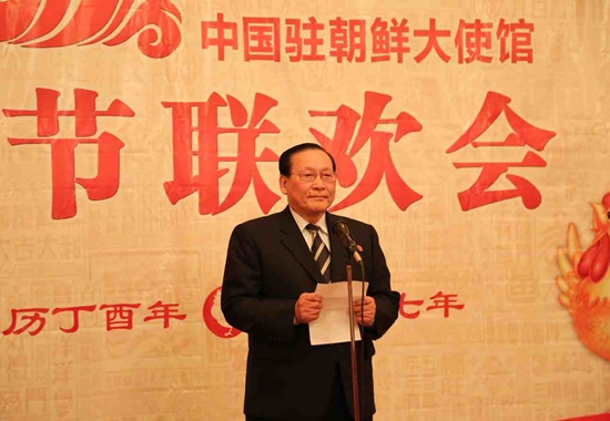리진쥔 중국대사는 “2016년 중조 양국이 경제사회발전에서 중요한 성과를 올렸다”고 평가하고, “2017년 중조관계에 여전히 도전은 있으나 기회 또한 오고 있다”고 지적했다. 그는 “중국 당과 정부는 항상 전략적 높이와 장기적 각도에서 중조우호협력관계를 대하고 중시해왔다”면서 “조선과 함께 중조 전통우의를 좋게 유지, 공고, 발전시켜 나가길 희망한다”고 말했다.