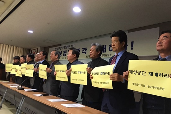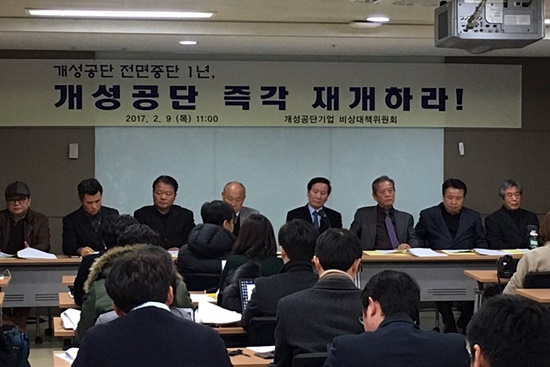 이날 기자회견에는 정기섭 위원장 등 개성공단 기업 대표 20여 명이 참석했다.
