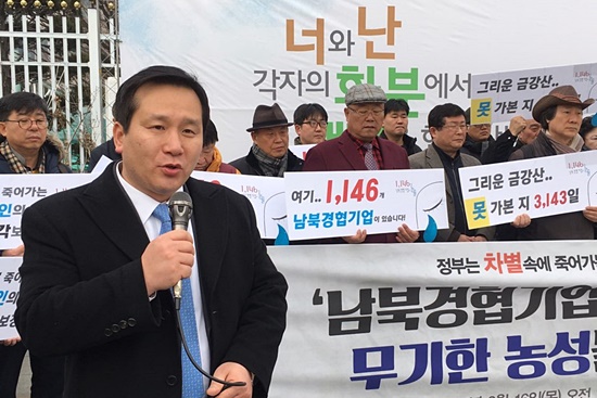 이날 기자회견에서 유동호 본부장은 "남북경협기업은 민족의 평화와 공동번영을 위해 평생을 바쳐 일했다"며 "더더욱 큰 상처는 정부의 형평성에 어긋난 차별대우에 의해 생겨난 남북경협기업의 깊은 절망과 분노"라고 일갈했다.