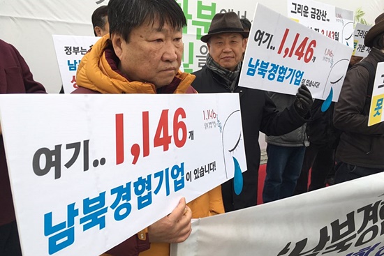 "여기 1,146개 남북경협 기업이 있다. 우리에겐 갈 곳이 없다. 오늘 우리는 다시 무기한 농성에 돌입한다."