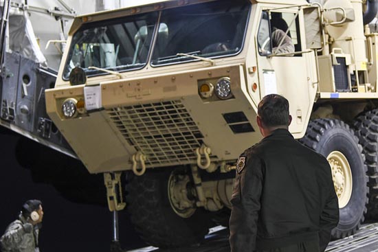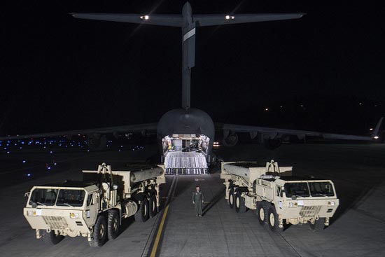 사드 발사대 2기를 포함한 일부 장비가 6일 밤 C-17항공기를 이용해 오산기지에 도착했으며, 현재 주한 미군기지 모처에 보관 중이다. 나머지 장비와 운용 병력도 순차적으로 들어올 예정이다. 사드 체계는 발사대 6기와 요격미사일 48기, X-밴드 레이더와 화력통제장치로 구성돼 있다.