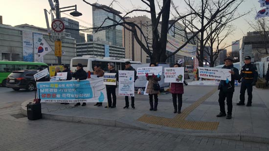 ‘남북경협기업의 생존권 보장을 위한 비상대책본부’(남북경협비대본)는 7일 아침 서울 광화문 정부서울청사 정문 앞에서 남북경협 기업인의 생존권 보장을 요구하는 ‘집중 출근시위 -화난 데이’를 시작했다.