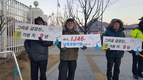 정부의 5.24조치와 금강산 관광 중단으로 피해를 입은 남북경협기업들은 지난달 16일 정부서울청사 앞에서 농성돌입 긴급 기자회견을 갖고 지난 연말에 이은 2차 노숙농성에 돌입해 출근시위를 벌이고 있다.