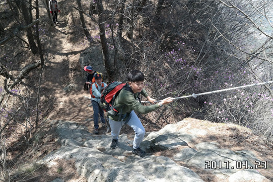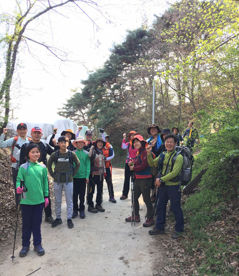 벚꽃이 지고 이젠 진달래가 만개하는 계절, 예상치 않게 26명에 이르는 대원들이 모였다. 봄소풍 가듯 즐거운 마음으로 초등생 3명, 중학생 1명이 부모님을 따라 참가했다. 이가빈(초5),이가희(초4) 자매와 부모님, 조민성 군(초3)과 아빠, 중1 박희강 군과 아빠, 이렇게 세 가족이 참가했다.