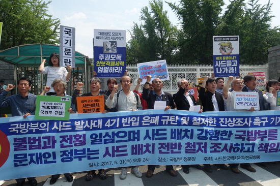 사드한국배치저지전국행동(사드저지전국행동)은 31일 오후 서울 삼각지 국방부 앞에서 긴급 기자회견을 갖고 이번 일을 계기로 사드배치 전 과정에 대한 철저한 진상조사와 책임자 엄중 처벌, 그리고 사드배치 절차 즉시 중단과 철회를 촉구했다.