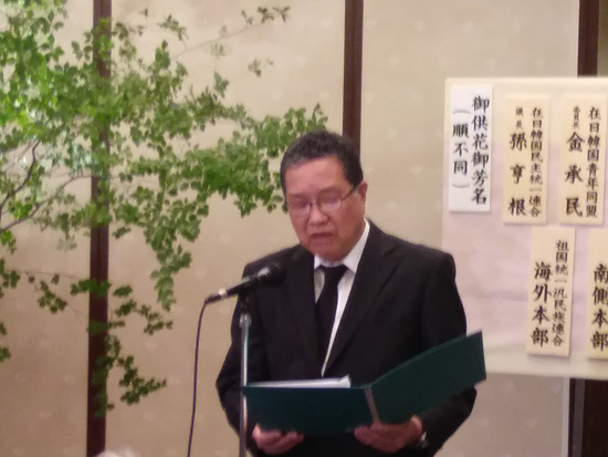 19일 오후 일본 도쿄도 지요다구(千代田区) 소재 쥬라구 호텔에서 지난 10일 별세한 곽동의 6.15공동선언실천 해외측위원회 위원장의 추모식이 열렸다.