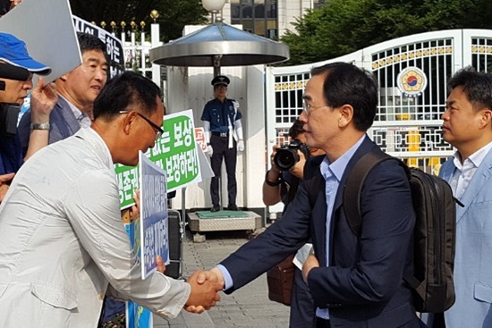 기업인들은 이날 오전 7시부터 출근집회를 열었다. 이 과정에서 8시경 서울 정부청사로 출근하던 조명균 통일부 장관과 조우했다. 일일히 악수를 나눈 조 장관은 "피해상황을 면밀히 파악도 하고 직접 만나 얘기도 듣고 소관부처와 협의해 방향을 잘 찾아보겠다. 최선을 다하겠다"고 말한 것으로 알려졌다.