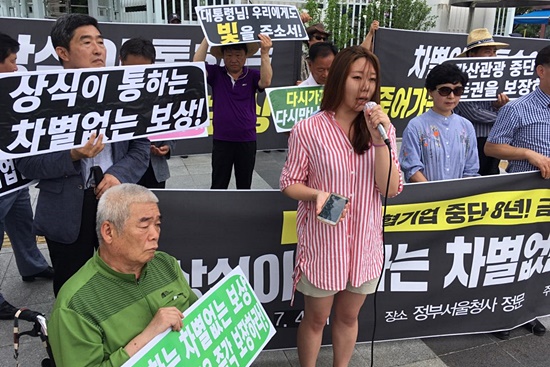 이날 기자회견에서 금강산에서 '황금마차'라는 이동식 포장마차를 운영한 이창희 씨가 휠체어를 타고 모습을 보였다. 최근 쓰러져 거동이 불편한 상황. 이 씨를 대신해 딸 상영 씨는 눈물을 보이며, "아직까지 한푼도 받지 못했다. 우리 가족은 무너졌다. 이제는 정말 보상해달라"고 촉구했다.