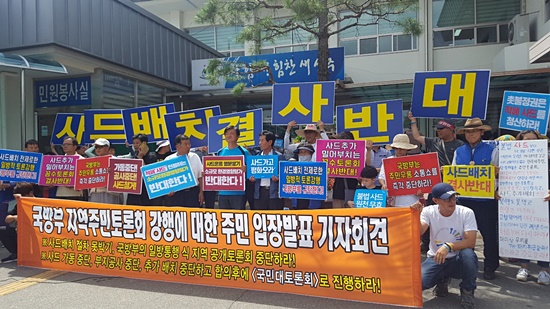 국방부가 17일 오후 계획한 고고도미사일방어체계(THAAD, 사드) 지역 공개토론회가 무산됐다. 지역주민들의 저항이 거세기 때문이다.