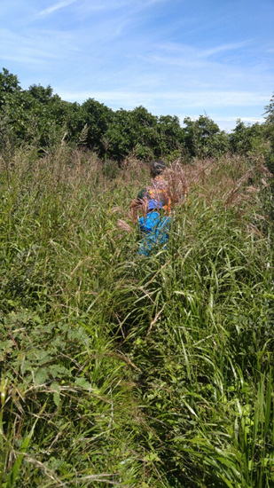 놀란 가슴을 가라앉히고 대오를 정비하여 내려가니 소사마을이 시야에 들어온다. 그런데 길이 보이지 않는다. 등산로 구분도 어렵다. 당귀밭 울타리 따라 걷는데 며칠 전 폭우로 웃자란 풀과 가시넝쿨이 엉켜 한발 내딛는 것조차 힘들다.