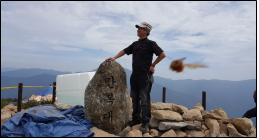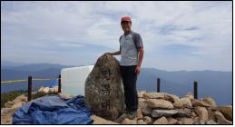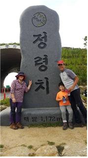 앞선 일행들과 어울려 간단한 간식을 하고 정령치 안내석 앞에서 즐거운 시간을 보냅니다.