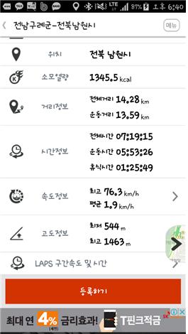 1,305m에서 544m로 내려가는 700m 이상의 고도차가 나는 하산 길이어서 그런지 상당히 가파른 비탈길입니다. 경사도가 무려 35도까지 나옵니다.