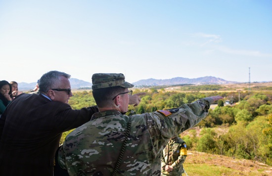 주한 미국대사관은 19일 “존 설리번 국무부 부장관이 비무장지대(DMZ)를 방문하여 굳건한 한미 동맹을 재확인했다”며, 설리번 부장관이 판문점 공동경비구역(JSA)을 둘러보고 '올렛' 초소에서 북녘을 응시하는 등의 사진 4장을 트위터에 올렸다.