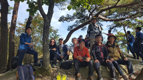 도봉산 입구에 모여선 박희성 선생님과 김재선 대장님을 비롯한 615산악회 회원들이 그동안의 안부와 인사를 나누며 산행결의를 다졌다.