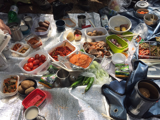 김익흥 님과 여러분들이 유기농 삶은 계란, 고구마, 감자, 봉숭아, 족발, 김치파전 등 먹을거리를 풍부하게 준비해 오시여 그동안 허기졌던 배를 행복하게 할 수 있었다.