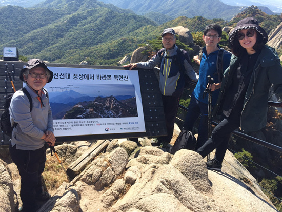 박희성 선생님과 유경완 님, 박윤경 님, 김래곤 님이 신선대 정상에 올랐다.