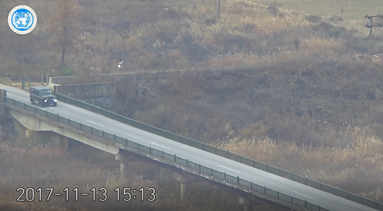 영상은 13일 오후 3시11분부터 북한 병사가 전조등을 켠채 차량을 몰고 '72시간 다리'를 향하는 장면으로 시작했다. 전력질주한 차량은 북한군 경비건물을 지났으며, 길을 가던 북한 군인이 주춤하며 뒤따라와 상황을 지켜보고 있다.