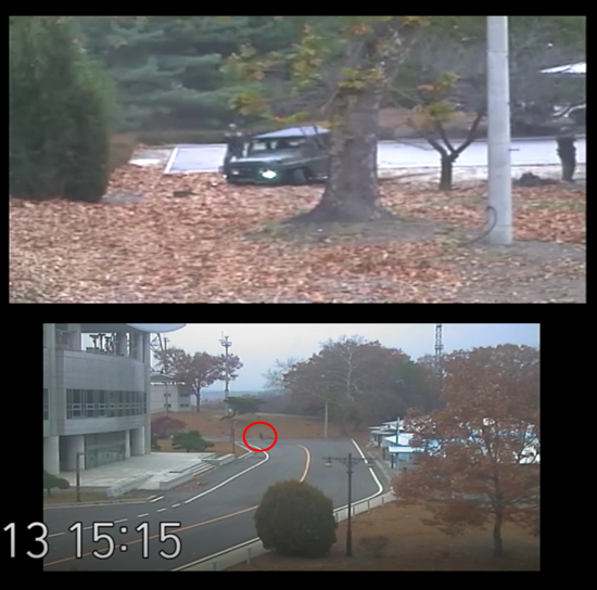 오후 3시 17분경 판문점 북측지역 김일성 친필비 주변에 집결한 북한군들이 어디론가 향하는 장면도 담겼다. 오후3시 55분경 쓰러진 북한군을 향해 남측 JSA 경비대 대원 3명 중 부사관 2명이 포복으로 다가가 신병을 확보하는 모습이 열영상장비(TOD)에 잡혔다.