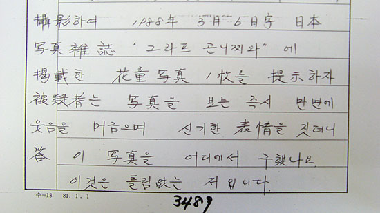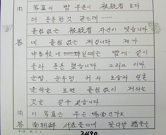 법원이 공개한 공판기록 3489~3490쪽에는 그 유명한 김현희 ‘칼귀’, 즉 ‘화동(花童) 사진’에 관한 문답이 분명하게 나온다. “화동사진 1매를 제시하자 피의자는 사진을 보는 즉시 만면에 웃음을 머금으며 신기한 표정을 짓더니 이 사진을 어디에서 구했나요. 이것은 틀림없는 저입니다”라고 진술하고 “사진의 뺨 부분이 피의자 보다 더 통통한 것 같은데...... 틀림없이 피의자 자신이 맞습니까”라는 질문에 “네, 틀림없이 저입니다”라고 답하고 “귀의 모습과 얼굴 윤곽을 보면 틀림없이 저라는 것을 알수 있습니다”라고 확언한다.