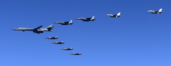 공군은 이날 "미 전략폭격기 B-1B 1대가 한국 공군 F-16 2대, F-15K 2대, 미 공군 F-35A 2대, F-35B 2대 등과 편대를 이루어 한반도 상공을 비행했다"고 밝혔다.