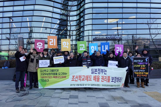 또한 “일본 정부와 사법부는 평등한 권리 보장, 교육상 차별 금지를 규정한 일본국 헌법과 법률을 이행하라”고 촉구하고 “국제인권규약에 따라 일본 사회의 한 구성원인 조선학요에 ‘고교무상화’에 따른 지원 및 지방자치체의 보조금 교부를 하도록 함으로써 평등한 교육권을 보장하라”고 요구했다.