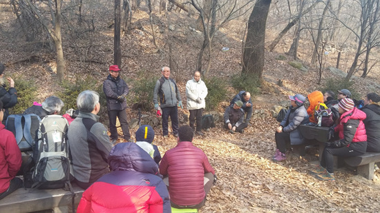 이날 산행참가자는 총 23명이 함께 했으며, 사정상 뒤풀이에 2명이 추가로 결합했다. 또 산행 멤버로 항상 나오시던 최고령자이신 유기진 선생님(94세)이 뜻밖에 불참하셨을 뿐만 아니라, 6.15합창단 회원 김태훈 님이 9살, 11살짜리 아들 둘을 데리고 오면서 졸지에 평균연령이 확~ 낮아지게 되어 모두가 즐거운 마음으로 시작하였다.