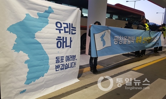 한편, 양양국제공항에는 전국농민회총연맹 강원연맹 소속 관계자들이 ‘평창올림픽 북측 선수단을 환영합니다’, ‘우리는 하나, 동포 여러분 반갑습니다’라고 적힌 플래카드를 들고 북측 선수들을 환영했다.