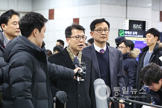 양양국제공항에 도착한 뒤 남측 방북단이 먼저 공항을 빠져나왔다. 방북단 단장을 맡은 이주태 통일부 교류협력국장은 “마식령스키장에서의 공동훈련을 안전하게 잘 마치고 왔다”며 “무엇보다 이번 공동훈련이 남북 간 합의대로 이뤄질 수 있게 되어서 매우 뜻깊게 생각한다”고 말했다.