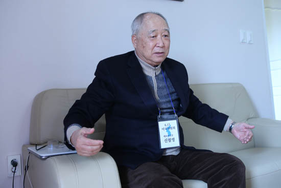 평창올림픽 해외동포 공동응원단을 이끌고 온 6.15미국위원회 위원장인 신필영(84) 6.15해외측위원회 부위원장은 올림픽 개막일인 9일 오전 6.15남측위원회가 배려해준 속초 숙소에서 기자와 만나 기쁨을 감추지 않았다.