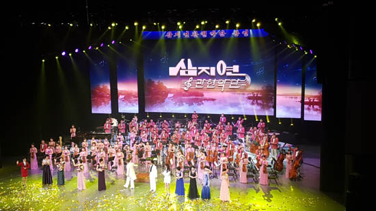 현송월 단장은 “평양에서도 다 들리게 큰 박수를 부탁드린다”며 <백두와 한나는 내 조국>을 독창했다.