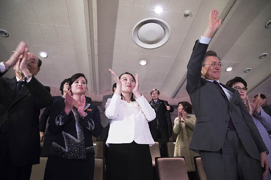 공연에 앞서 손님방에서 김영남 상임위원장은 “대통령께서 바쁘고 전반적인 대사를 보살펴야 하는데도 귀중한 시간을 내주셔서 기쁘고 인상적이다”고 인사했고, 문 대통령은 “강릉공연도 감동적이었지만 서울공연은 관객도 많고 시설도 더 좋다”고 화답했다.
