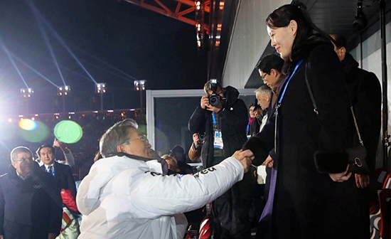 오후 8시. 평창올림픽 개막식 주빈석에 김영남 상임위원장, 김여정 당 제1부부장이 앉았다. 문재인 대통령 부부가 입장하자 모두 일어섰다. 그리고 문 대통령과 김 제1부부장은 처음으로 악수했다. 외신들은 “역사적인 악수”라고 일제히 타전했다.