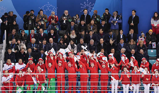 북측에서는 김영남 최고인민회의 상임위원장, 김여정 당 제1부부장, 최휘 국가체육지도위원회 위원장, 리선권 조국평화통일위원회 위원장 등 10명이 함께 했다.