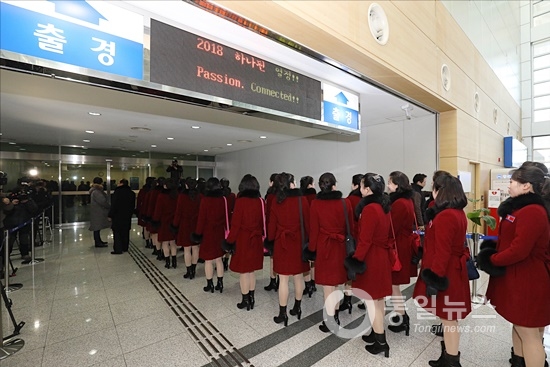 경기장에서 응원을 펼치고, 아홉 차례 공연을 선보인 북측 응원단도 밝은 표정. 한 단원은 “하루빨리 통일해야겠다는 생각이 든다. 한민족인데...”라며 “단일팀 경기랑 함께 응원하고 하나가 돼서 다행이고 웃고…. 얼마나 기쁜지 모르겠다”고 소감을 밝혔다.