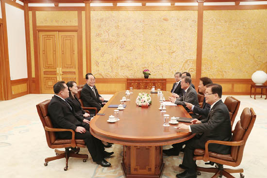 청와대 고위관계자는 사절단의 김정은 국무위원장 접견 여부에 대해서는 “현 단계에서 최종적으로 확정된 바 없다”면서도 “김여정 방남 때 대통령이 직접 만났고, 그에 상응하는 결과들이 있을 것으로 본다”고 말해 접견을 낙관하고 있음을 내비쳤다.