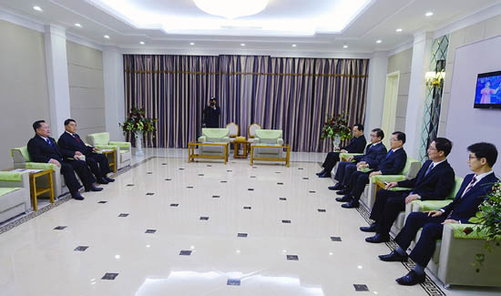 이어 특사단은 공항 귀빈실에서 영접 나온 리선권 조국평화통일위원회 위원장, 맹경일 통전부 부부장과 10분간 환담했다.