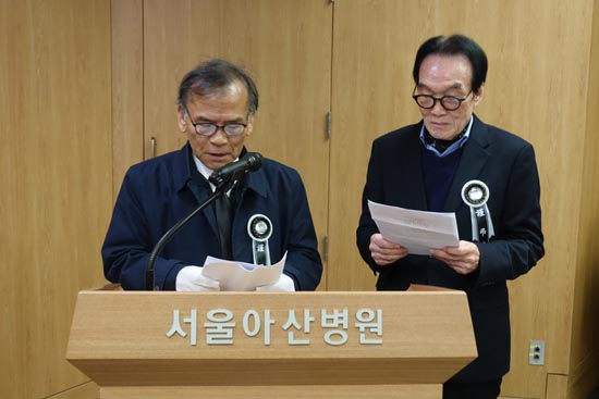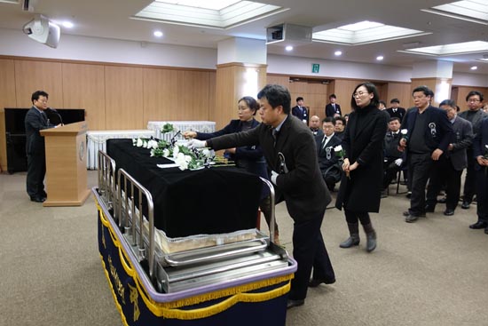 11일 오전 7시 20분 현대아산병원 영결식장에서 ‘고(故) 유동호 남북경협비대위 위원장 경협기업인장(葬)’ 영결식이 경협기업인들과 유가족 등이 모인 가운데 치러졌다.