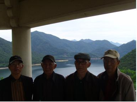 그런데 1950년 10월 중순에 국방군 백골부대가 멋도 모르고 동상면 뒷산에 올라왔다가 골짜기로 내려온 것을 매복하고 있던 빨치산 부대가 들이쳐서 박살을 냈고 그 후로는 경찰이 들어오지 못했다고 한다. 장윤규 동지가 설명을 하면서 저수지 오른쪽 산 너머에 완주군당이 있었고 가운데 보이는 산 너머가 동상면이라고 했다. 오리가 몇 마리 물 위에 떠 있고 주변의 아름다움에 잠깐 머물렀다가 떠났다.