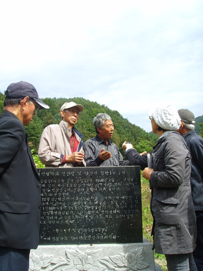 “이곳을 덕곡리 골이라고도 하는데요. 저 뒷산에 전북북부 지도부가 있었습니다. 1951년 1월 10일경입니다. 이 안성을 공격했습니다. 포 몇 발을 쏘자 저들은 저항 없이 달아났습니다. 안성을 해방시켰지요. 이곳에서 한 일주일 동안 합법적으로 주둔하고 있다가 떠났습니다. 아마도 저들이 서울을 빼앗기고 밀리고 있을 때라 안성을 손쉽게 먹은 것 같습니다.” 우리는 무주로 갔다. 장윤규 동지는 건강에 무리도 되고 아주머님이 앓고 있어서 먼저 서울로 떠났다. 나이도 많고 이런 기회가 흔치 않은데 마지막일지도 모르는 것을 동지들과 함께 전적지를 돌아보지 못하고 혼자 떠나는 것이 못내 서운한 듯 고속버스 안에서 연신 손을 흔들었다. 우리는 점심을 먹고 장수면 계북면으로 갔다. 재를 넘기 전에 김동섭 동지가 차를 세웠다.