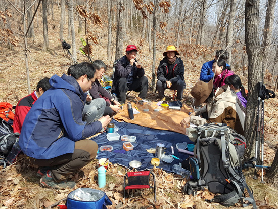 이번 산행 전 단톡방에 정상주(頂上酒)를 금지한다는 정부 방침이 나왔다는 소식이 올라와 대원들 사이에서도 설왕설래하던 터였다. 보도에 따르면, 환경부는 자연공원(국립공원, 도립공원, 군립공원) 내 음주 금지 구역을 지정했다는 것이다. 즉 자연공원 내 대피소·탐방로·산정상부 등 공원관리청에서 지정하는 장소나 시설에서의 음주 행위가 3월 13일부터 금지되며, 1차 위반 시에는 5만 원, 2차 위반 때부터는 10만 원의 과태료가 부과된다는 것이다. 우리가 산행한 때는 3월 11일이니 이날은 다행히도(?) 정상주를 마실 수 있었다. 그런데 앞으로가 문제다.