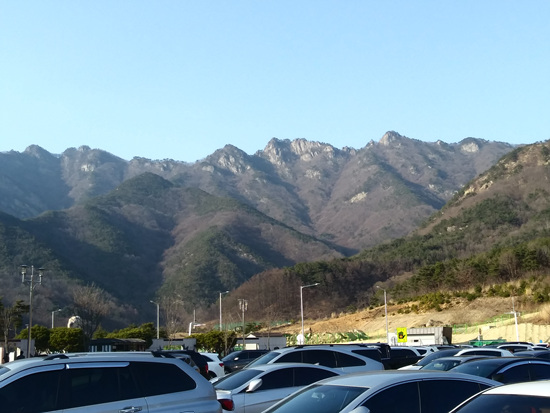 상경하는 길에 첫 휴게소인 속리산휴게소에서 멈췄다. 하산 후 서울에 급히 가기 위해 차에 올라탔기에 잠깐 씻기도 할 겸 해서. 화장실에서 끈적거리고 나른한 몸을 이끌고 대강 씻은 후 바깥으로 나오자 갑자기 휴게소 주변 광경이 눈에 들어왔다. 적이 놀랐다. 휴게소를 둘러싸고 전후좌우로 멋진 기암괴석이 병풍처럼 둘러선 것이다.