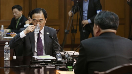 ▲ 북측 리선권 단장의 발언을 듣고, 물 한잔 마시는 조명균 남측 수석대표. [사진-공동취재단]