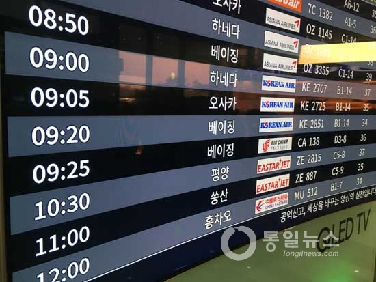 공연단이 도착했을 때는 활주로에 고려항공 소속 프로펠러 항공기 4대가 계류 중이었고, 이날 평양국제공항에서 출발하는 비행편은 △베이징(JS151), 08:20 △심양(JS155), 11:20 △김포(ESR2816), 12:15, 도착하는 비행편은 △김포(ESR2815), 11:08 △베이징(JS152), 15:35 △심양(JS156), 15:40 등으로 표시됐다.