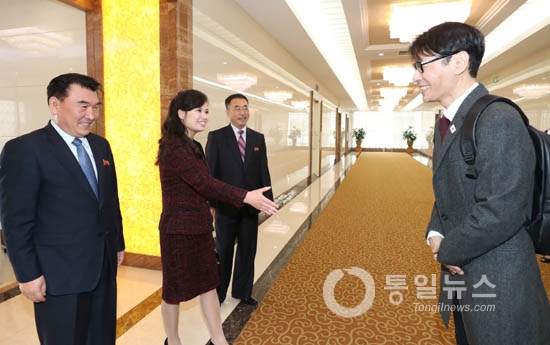 단장인 도종환 문화체육관광부 장관과 부단장인 김상균 국가정보원 2차장, 윤건영 청와대 국정상황실장, 윤상 수석감독은 공항 귀빈실로 이동해 북측 박춘남 문화상, 현송월 단장, 김순호 부단장의 환영을 받았다.
