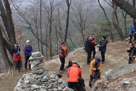 정상이 멀지 않아서 사람들이 금방 올 줄 알았더니 한참을 안 왔다. 왜 그런가 하고 전화를 했더니 길을 잘못 들었다고 한다. 그러고선 또 한참을 기다렸다. 나중에 이야기를 들어보니 또 길을 잘못 들어서 정상을 3번이나 갔다 왔다고 한다. 합창단의 모 단원이 합창단 사람들만 데리고 잘못된 길로 인도했단다. 합창단 사람들 만이라니…. 다음부턴 이런 민폐가 없도록 다른 분들과 잘 붙어 다녀야겠다.